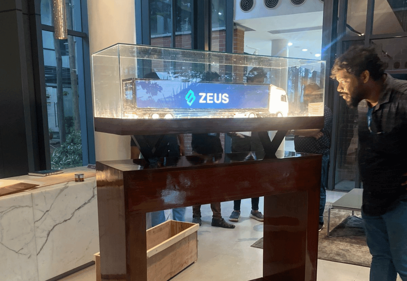 A bespoke console table crafted from Burma teak, showcasing a custom miniature truck model. Designed as a heartfelt gift for a son’s new company, the table features integrated lighting and elegant craftsmanship, symbolizing love, support, and entrepreneurial spirit.